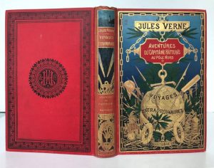 Paris, Bibliothèque d'éducation et de récréation J. Hetzel et cie, sans date.- Grand in-8; cartonnage polychrome au globe doré ou “à la Mappemonde” (type 3), dos au phare, second plat type Engel “i”.