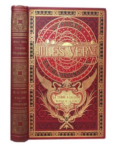 Toute première émission du second cartonnage «au monde solaire» pour De la Terre à la Lune/Autour de la Lune. Légère restauration aux coiffes.