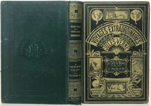 Paris, J. Hetzel et Cie, sd (ca 1880). Grand in-8° double, cartonnage éditeur en percaline vert foncé «aux deux éléphants». 2e plat Lenègre de type «d». Tranches dorées. Gardes bleu. Imp. Gauthier-Villars.
