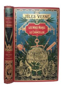 Paris, Bibliothèque d'Éducation et de Récréation, J. Hetzel et Cie, sd (1897). Grand in-8° double, cartonnage éditeur polychrome «au globe doré» du 2e type (à l'empiècement). Engel Relieur. Tranches dorées. Gardes anthracite. Imprimerie Gauthier-Villars. Catalogue «D» pour 1895-1896. Quasi dénué de rousseurs.