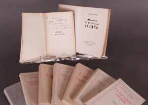 Paris, Gallimard, 1927. In-8 broché. Exemplaire numéroté sur Lafuma-Navarre de l’édition originale. Envoi autographe de l’auteur à M. Georges Piedbœuf. Bel exemplaire. Joint : BEDEL (Maurice). Mémoire sans malice sur les dames d’aujourd’hui. Paris, Gallimard, 1935. In-8 broché. Exemplaire numéroté sur alfa de l’édition originale. Envoi autographe de l’auteur à M. Georges Piedbœuf, «champion de l’âme française face à la Germanie». Bel exemplaire. Joint : BEDEL (Maurice). L’Alouette aux nuages. Un des 52 Lafuma de l’édition originale; Zigzags. Un des 35 pur fil de l’édition originale. Joint : 5 titres en édition originale, sur alfa: Molinoff Indre-et-Loire, L’amour camarade, Zulfu, La nouvelle Arcadie, Monsieur le Professeur Jubier. Ensemble en très belle condition.