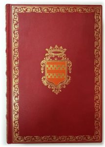 Editions Fac-similés Lucerne, Suisse 1984. Tirage limité à 980 ex., celui-ci n°331. Reliure éditeur in-4 plein cuir rouge, plats à encadrement à la roulette, blason à damier et couronne ducale or, dos à 5 nerfs, caissons ornés de flurons or, 3 tranches dorées, contres plats à la roulette. Complet des commentaires de l'édition par Raymond CAZELLES. In-4, reliure demi cuir rouge, plats demi toile verte, dos lisse, titre or. Les deux ouvrages sous étui en plexiglas