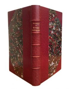 Deux volumes reliés en 1. Reliure in-12 demi-maroquin vieux rouge à coins, dos à 5 nerfs, tête dorée, couvertures conservées (reliure signée Miguet)