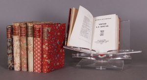 Paris, Plon, 1934.In-8, cartonnage recouvert de tissu à motifs floraux, pièce de titre maroquin brun, les plats et dos de la couverture conservés. Un des 13 exemplaires de tête sur Chine de l’édition originale. En bonne condition. Joint : 6 Œuvres des Tharaud en édition originale. Paris Saïgon dans l’azur. 1932. 1/130 Hollande Van Gelder; Les Cavaliers d’Allah. 1932. 1/50 Hollande Van Gelder; Quand Israël n’est plus roi. 1933. 1/252 pur fil Lafuma; Fez ou les bourgeois de l’Islam. 1930. 1/300 Hollande Van Gelder; Petite histoire des juifs. 1927. 1/1.150 pur fil Lafuma; Rabat ou les heures marocaines. 1918 (Emile-Paul Frères éd.) N° 285 du tirage. Mêmes reliure et condition que le premier titre.