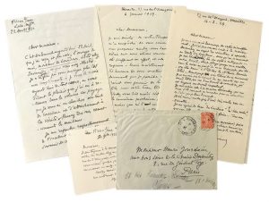 Première édition illustrée par Henri JOURDAIN. Exemplaire de l'illustrateur comprenant en plus de la suite des illustrations et des culs de lampe, 4 dessins originaux à l'encre et au pastel signés de l'artiste et 5 lettres autographes signées de Chateaubriant à Jourdain évoquant ce livre. En feuille in-4 sous chemise et étui, frottements en charnière d'étui