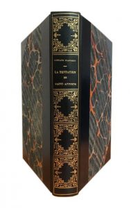 La tentation de Saint Antoine. Charpentier et Cie libraires-éditeurs Paris 1874. E.O. Reliure in-8 demi maroquin à longs grains à coins, dos lisse orné, couvertures poussiéreuses conservées, léger manque en coin inférieur droit de la première de couverture, intérieurs frais, rares rousseurs