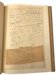 - Le premier jeu d'épreuves partiel signé de la première version du discours, 34 pages pour la plupart découpé et entouré du manuscrit autographe, certaines pages n'étant pratiquement qu'autographes, ratures, retraits et corrections