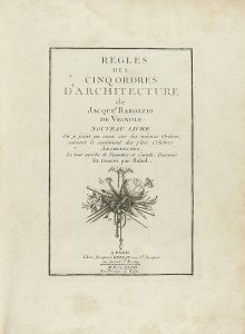 .1747. LIBRO: .(ARQUITECTURA). .BAROZZIO DE VIGNOLE, JACQUES : .REGLES DES CINQ ORDRES D´ARCHITECTURE...Le tout enrichi de vignettes et cartels; dessinés et gravés par Babel. Paris: Chez Jacques Chereau, 1747. 4º menor. Frontis + 150 lám....
