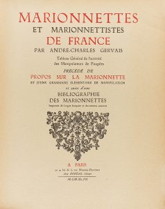 .1947. LIBRO: .(ARTE). .GERVAIS, ANDRE-CHARLES: .MARIONNETTES ET MARIONNETTISTES DE FRANCE PAR... Tableau Général de l´activité des Manipulateurs de Poupées. Précédé de propos sur la marionnette et d´une grammaire elémentaire de...