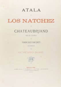 .1876. LIBRO: .(BIBLIOFILIA-LITERATURA). .CHATEAUBRIAND: .ATALA Y LOS NATCHEZ. Trad. de Francisco Nacente. Barcelona: Juan Aleu y Fugarull, Editor-Impresor, 1876. 2 vol. en gran folio.  I: X+ 322 p.+ 19 lám. II: 280 p.+ 12 lám. Portada...