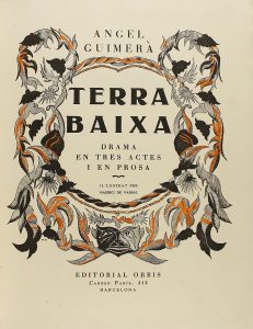 .1930. LIBRO: .(BIBLIOFILIA-ENCUADERNACIÓN). .GUIMERÀ, ANGEL:. .TERRA BAIXA. Drama en tres actes i en prosa. Barcelona, Orbis, 1930. 4º mayor. 133 fol., 12 lám., viñetas y orlas ilustr. por Maurici de Vassal. Enc. especial en plena...