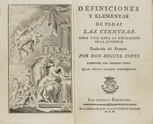 .1790 ca.. LIBRO: .(CIENCIAS). .COPIN, MIGUEL:. .DEFINICIONES Y ELEMENTOS DE TODAS LAS CIENCIAS.. Barcelona: Imp. Juan Francisco Piferrer, s.a. 8º menor. 8 h. 248 p. + 4 h. y 13 lám. (en el índice de láminas solo figuran 11). Enc. en pasta...