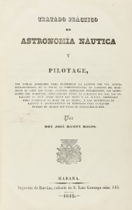 .1842. LIBRO: .(ASTRONOMÍA NÁUTICA). .BAGES, JOSÉ RAMON: .TRATADO PRÁCTICO DE ASTRONOMÍA NÁUTICA Y PILOTAGE... Habana: Imp. Barcina, 1842. 4º menor. 5 h. + IV + 105 p. + 2 h. + 4 estados plegados. Conserva todos sus estados y tablas....