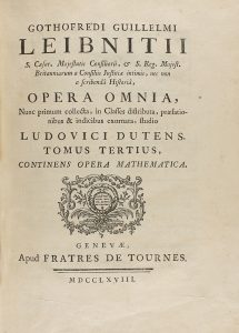 .1768. LIBRO: .(CIENCIAS). .LEIBNIZ: .OPERA OMNIA... TOMUS TERTIUS CONTINENS OPERA MATHEMATICA. Genevae: Apud Fratres de Tournes, 1768. 4º menor. 1 h. + VIII + LV + 663 p. + 1 lám. plegada y XXV lám. numeradas y plegadas al final. Buen...