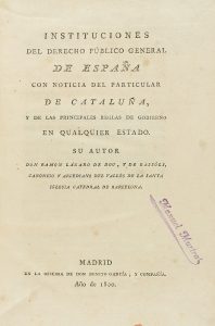 .1800. LIBRO: .(DERECHO). .LÁZARO DE DOU, RAMON: .INSTITUCIONES DEL DERECHO PÚBLICO GENERAL DE ESPAÑA CON NOTICIA DEL PARTICULAR DE CATALUÑA, Y DE LAS PRINCIPALES REGLAS DE GOBIERNO EN CUALQUIER ESTADO. Madrid: Benito García y...