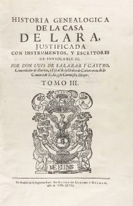 .1697. LIBRO: .(GENEALOGÍA-HERÁLDICA). .SALAZAR Y CASTRO, LUIS DE: .HISTORIA GENEALOGICA DE LA CASA DE LARA, JUSTIFICADA CON INSTRUMENTOS, Y ESCRITORES DE INVIOLABLE FE. TOMO III. Madrid: Imp. Real por Mateo de Llanos y Guzman, 1697. Folio....