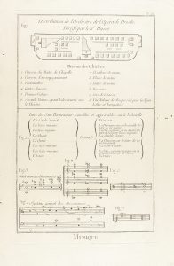 .1750 ca. GRABADO: .(MÚSICA). .17 LÁM. DE MÚSICA PROCEDENTES DE L´ENCYCLOPEDIE. S.imp.: S.l. 1750 ca. Folio mayor. 22 p. + XVII lám. (alguna bis) + I p. + II lám. de danza.