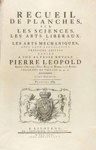 .1772. LIBRO: .(ARTE). .RECUEIL DE PLANCHES SUR LES SCIENCES, LES ARTS LIBÉRAUX ET LES ARTS MÉCHANIQUES... TOME PREMIER. Livourne: de l´Imprimerie des éditeurs, 1772. Gran folio. 269 lám. calcográficas con texto intercalado. Portada con...