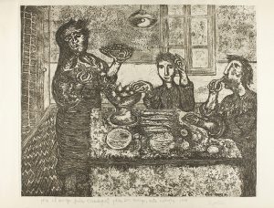 .1978. GRABADO: .RIPOLLES: .COMIDA EN EL RESTAURANTE. 35 x 42,5 cm imagen, papel 38 x 50 cm. Realizado para ilustrar el libro de Josep Pla ´Un viatge frustrat´. Se hizo una tirada de 200 ejemplares numerados y firmados a lápiz, este que...