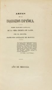 .1851.. LIBRO: .(HISTORIA-INQUISICIÓN). .GONZALEZ DE MONTES, RAIMUNDO:. .ARTES DE LA INQUISIZION ESPAÑOLA. PRIMERA TRADUCZION CASTELLANA, DE LA OBRA ESCRITA EN LATIN POR EL ESPAÑOL [...].. [San Sebastián]: [Ignacio Ramón Baroja], 1851. 8º. 1 h....