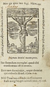 ejemplar. Un grabado de Cristo en la cruz. Segunda edición de este texto publicado por vez primera en Zaragoza, 1640, y posteriormente esta edición valenciana, de la que solo se conoce un ejemplar en bibliotecas públicas españolas. Las ´licencias´ son de Zaragoza, 1636; y Valencia, 1645. Dice el autor en su ´Prologo al Lector´: ´Lo mismo que el enemigo de las almas, para la total perdición dellas, procuró en Zaragoza, ha procurado en Valencia, porque si alli procuró estorbar la primera impression deste libro, como hemos dicho en este Prólogo, aqui ha procurado impedir la segunda, enfriando por todos caminos las voluntades de los fieles para que no alentassen dicho libro (...) Pero para preservarlo de la muerte, la provindencia divina le ha dado una grande vida, tan eficaz que lo ha sacado a luz. (...) Doy pues las gracias desta dicha, y deste parto en su intelectual y espiritual vida al Doctor don Gaspar Vidal.´.