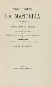 .1876. LIBRO: .(PROSTITUCIÓN-SOCIOLOGÍA). .CARBONERES, MANUEL: .PICARONAS Y ALCAHUETES Ó LA MANCEBÍA DE VALENCIA. APUNTES PARA LA HISTORIA DE LA PROSTITUCION DESDE PRINCIPIOS DEL SIGLO XIV HASTA POCO ANTES DE LA ABOLICION DE LOS FUEROS....