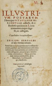 .1538. LIBRO: .(LITERATURA CLÁSICA). .MIRANDULAM, OCTAVIANUM: .ILLUSTRIUM POETARUM FLORES PER... Argentoratum (Estrasburgo): Philippi Beroaldi, 1538 [en colofón]. 8º menor. 8 h. + CCCXLIIII fol. Sign. A-Z8, a-u8. Capitales y xilografía...