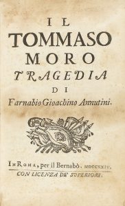 .1724. LIBRO: .(HISTORIA). .ANNUTINI, FARNABIO GIOACHINO: .IL TOMMASO MORO TRAGEDIA. Roma: Bernabó, 1724. 8º. 3 h. + 155 p. Enc. en pergamino, nervios. Tragedia representada en 5 actos sobre Tommaso Moro. Fue un pensador, teólogo,...
