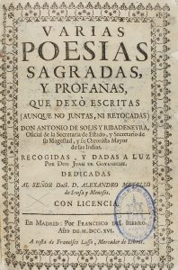 .1732. LIBRO: .(LITERATURA). .SOLIS Y RIBADENEYRA, ANTONIO DE: .VARIAS POESIAS SAGRADAS, Y PROFANAS, QUE DEXO ESCRITAS (AUNQUE NO JUNTAS, NI RETOCADAS)... RECOGIDAS Y DADAS A LUZ POR JUAN DE GOYENECHE. Madrid: por Manuel Fernandez, 1732. 8º...