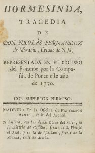 .1770. LIBRO: .(LITERATURA). .FERNANDEZ DE MORATIN, NICOLAS: .HORMESINDA, TRAGECIA DE... Madrid: Oficina de Pantaleon Aznar, 1770. 12º. 12 h. + 94 p. Primera edición. Palau 89402. [Sigue:] .MILANES, JOSEF: BRAHEM BEN HALI. Alcalá: Imp....