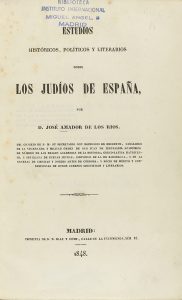 .1848.. LIBRO: .(HISTORIA-JUDAICA). .AMADOR DE LOS RIOS, JOSÉ:. .ESTUDIOS HISTÓRICOS, POLÍTICOS Y LITERARIOS SOBRE LOS JUDIOS DE ESPAÑA.. Madrid: imprenta de M. Díaz y Comp. 1848. 8º mayor. XXX p.+ 1 h. blanca+ 655 p.+ 8 h. Bella enc. de la...