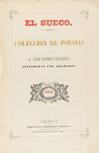.1859. LIBRO: .(LITERATURA). .BERNAT BALDOVÍ, JOSÉ: .EL SUECO. COLECCIÓN DE POESÍAS. Valencia: Imp. regeneración tipográfica, 1859. 4º menor. 404 p. Portada y portadilla a varias tintas. Ilustr. con grabados en el texto, en orla...