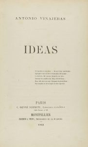 .1862.. LIBRO: .(LITERATURA-CUBA). .VINAJERAS, ANTONIO:. .IDEAS.. Paris - Montpellier: Bohem e hijo, Impresores de la Academia, 1862. 8º mayor.190 p.+ 1 h. Enc. de la época en plena piel chagrin rojo con decoración de filetes enmarcando los...