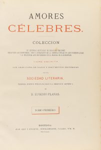 .1879. LIBRO: .(LITERATURA). .AMORES CÉLEBRES. COLECCIÓN DE LEYENDAS HISTÓRICAS DE TODAS LAS NACIONES ABRAZANDO LAS COSTUMBRES... Barcelona: Juan Aleu y Fugarull, Editor-Impresor, 1879. 2 vol. en folio menor. I: 860 p.+ 10 lám....