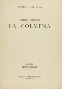 .1950.. LIBRO: .(LITERATURA). .CELA, CAMILO JOSÉ:. .CAMINOS INCIERTOS, LA COLMENA.. Madrid: Ediciones Mundo Hispánico, 1950. 4º menor. Páginas de la 535 a 563. Una lámina. Cubiertas originales. Dedicatoria autógrafa a M. Fernández Almagro,...