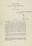fechada en Cebreros, 2 de noviembre de 1950. Edición original en separata propia, de esta pre-edición de la novela La Colmena. No pudo publicarse en España hasta el año 1955, por oposición de la censura franquista, muy a pesar de que el autor era un protegido de Juan Aparicio, influyente político en el régimen. El nombramiento de Manuel Fraga y la insistencia del autor conllevaron la autorización de la primera edición española de una novela que sería incluida en la lista de las 100 mejores novelas en español del siglo XX del periódico «El Mundo». La primera edición fue publicada por Emecé en Buenos Aires en 1951. Esta pre-edición contiene el capítulo 1, y fue publicada en los ´Cuadernos Hispanoamericamos (núm. 15)´.