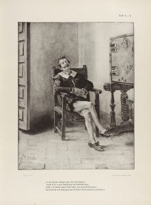 LX p. + 198 p. II: 374 p. III: 300 p. IV: 312 p. Y cuatro vol. de láminas en b/n con 689 de J. Jiménez Aranda, y 111 de Alpériz, Bilbao, García Ramos, Jiménez (Luis), L. Cabrera, Moreno Carbonero, Sorolla, Sala y Villegas y un juicio crítico de José R. Mélida. Ocho vol. enc. en cartoné imitando pergamino, con ruedas en rojo y decoraciones de abanico en las esquinas. Lomeras algo descoloridas por la luz. Palau 52253 la describe como una edición suntuosa.