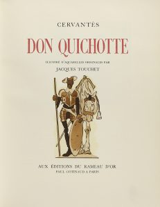 .1945 ca. LIBRO: .(CERVANTINA-BIBLIOFILIA). .CERVANTES SAAVEDRA, MIGUEL DE: .DON QUICHOTTE DE LA MANCHE. Paris: Ed. du Rameau d´Or, 1945 ca. 4 vol. en 4º menor. I: 2 h. + 227 p. II: 217. + 2 h. III: 2 h. + 248 p. IV: 2 h. + 252 p. Ilustr....