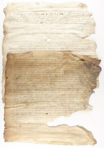 pergamino y pérdida de alguna parte del texto. El segundo de ellos es de 1367 y está dado en Banyoles, sobre una venta perpetua del huerto llamado el Vilar, de la parroquia de Vilert, del señorío de la casa de Aiguaviva; también en este documento el ápoca de pago. Como el anterior, presenta pérdidas que afectan parte del texto. El último no lleva firma notarial, o la ha perdido, pues también está dañado y se refiere a la donación de 400 sous en moneda barcelonesa como dote a Elisenda, dote que le da su hermana Brunissenda, de la parroquia de Fontcoberta.