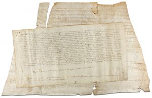 .1455 y 1461. MANUSCRITO: .DOS PERGAMINOS DE. S. XV. Dos documentos firmados ante notario y sobre pergamino. Uno de ellos con faltas que afecta el texto. El otro, fechado en 1461 y referido a una dote matrimonial firmado en un Valle del Alto Aragón.