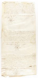 .1626. MANUSCRITO: .(PERGAMINO). .PERGAMINO QUE RECOGE VARIOS DOCUMENTOS CON FIRMA NOTARIAL. GIRONA. 20 x 42 más 14 x 38 cm, cosidos entre sí. Los pergaminos están firmados por diferentes notarios, uno es Gabriel Duran y el segundo Francesc...