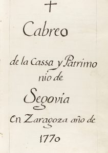 .1770. MANUSCRITO: .(ZARAGOZA). .CABREO DE LA CASSA Y PATRIMONIO DE SEGOVIA EN ZARAGOZA, AÑO DE 1770. Manuscrito sobre papel en 4º mayor. 168 fol. numerados. Escritos solo en recto, muchas hojas en blanco. Papel muy recio y blanco. En el...