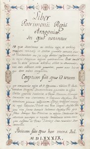 SUNT AD ELUCIDANDUM SEU (UT UT VULGO DICITIOR) CAPIBREVIANDUM IN REGNO ARAGONUM REGIUM PARIMONIUM. Manuscrito de 362 fol. sobre excelente y grueso papel de hilo que reproduce fielmente el original manuscrito de 1589, que nunca llegó a imprenta y se custodia en el Archivo de la Corona de Aragón de Barcelona. Portada en orla iluminada. Texto en tinta negra y capitulales en rojo, ejemplar reglado. Alguna galería marginal en las últimas h. Manuscrito por un único copista. La presente copia la mandó realizar el Conde de Montarco en 1804, de otra copia igualmente hecha por orden del Conde de Campomanes en 1788, que a su vez fue hecha de otras copias anteriores (ver la Introducción y Advertencia preliminares). Conocidos con el nombre de ´Mulasses´, estos manuscritos, redactados en el siglo XVI, constituyen un índice con miles de referencias de documentos conservados en el Archivo de la Corona de Aragón, relativos a localidades de Cataluña, Aragón, Mallorca y el País Valenciano.´La importancia de esta colección de noticias de las cartas reales pertenecientes al reino de Aragón se recomienda por sí misma, y sería completa añadiendo igual repertorio por lo tocante a Cataluña, Mallorca y Valencia´ (BOVER, 1845). Enc. en pasta española de época, con ruedas doradas, cantos, nervios, tejuelo, lomera cuajada, cortes pintados, muy rozada y algún fino taladro.