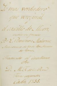 .1835. MANUSCRITO: .(NOVELA ROMÁNTICA). .BOURNON MALARME, C.: .LO MAS VERDADERO QUE VEROSIMIL Ó EL CASTILLO DE MISERI. Trad. por M. F. de los R. (Manuel Fernández de los Ríos). Cádiz, 1835. 2 vol. en 8º menor. Manuscrito con la...