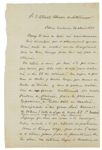 .1897. MANUSCRITO: .O´NEILL Y ROSSINYOL, JUAN: .CARTA MANUSCRITA DIRIGIDA A ALBERTO ALVARER. Cuartilla escrita en recto y verso. Fechada y firmada en Palma de Mallorca en abril de 1897, por el pintor.