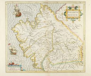 .1613 ca.. MAPA: .(GALICIA). .[MERCATOR; HONDIUS:].. .GALLAECIA REGNUM.. Mapa grabado al cobre con los límites y cartelas coloreados. Huella: 36 x 41 cm. Papel 47 x 56 cm. Perteneciente a Gerardi Mercatoris Atlas sive Cosmographicæ. Texto en...