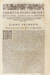 Emprenta de Claudio Maçé (sic.), 1651. 4º. 10 h. + 617 p. + 11 h. de índices (de 15 h.). Profus. ilustr. con grabados xilográficos en el texto con más de 600 plantas, animales e insectos. Texto con apostillas marginales. Enc. en media piel del s. XIX con el cajo anterior sesgado. Corto de márgenes, portadilla remontada y portada con antigua restauración de una rasgadura. La obra está completa pero presenta los defectos de haber sido muy consultada: numerosas anotaciones manuscritas, alguna rasgadura reparada toscamente, en algún caso (unas 8 páginas) parte del texto ha sido reconstruído por pequeña pérdida de papel, alguna galería marginal, que no afecta el texto. Presenta también algún error de paginación, pero texto completo. Los índices están toscamente reconstruídos. Buena edición de la que está considerada la primera farmacopea, escrita en tiempos de Nerón. A diferencia de otras obras clásicas, este libro tuvo una enorme difusión en la Edad Media en su original griego y en otras lenguas, como el latín y el árabe. Palau 74026. CCPB 37041-X.