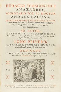 .1733. LIBRO: .(MEDICINA-FARMACOPEA). .SUÁREZ DE RIBERA, FRANCISCO: .PEDACIO DIOSCORIDES ANAZARBEO, ANOTADO POR EL DOCTOR ANDRES LAGUNA medico dignissimo de Julio III Pontifice Maximo, nuevamente ilustrado, y añadido, demostrando las plantas, y...