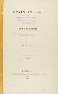.1831.. LIBRO: .(VIAJES). .INGLIS, HENRY DAVID:. .SPAIN IN 1830.. London: Whittaker, Treacher and Co., [printing by S. Manning and co.,]1831. 2 vol. 8º mayor. IX, IX, 400 páginas. 402 p. Tela moderna roja en ambos volúmenes. Sello de biblioteca....
