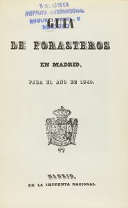 .1849.. LIBRO: .(VIAJES-GUÍA). .GUIA DE FORASTEROS EN MADRID, PARA EL AÑO DE 1849. [SIGUE:] ESTADO MILITAR DE ESPAÑA É INDIAS. AÑO DE 1849.. Madrid: Imprenta Nacional, 1849. 8º menor. Una lámina retrato de la Reina Isabel II grabado por L....